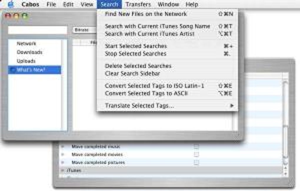 O design limpo e claro da interface de tão simples surpreende que seja capaz de realizar tantas funções. Você organiza a busca, resultados, servidores de rede, downloads e arquivos compartilhados com atalhos do teclado. O Cabos se integra com o iTunes e com o iPOD. Outra grande vantagem porque isso agiliza demais a organização e execução dos arquivos.